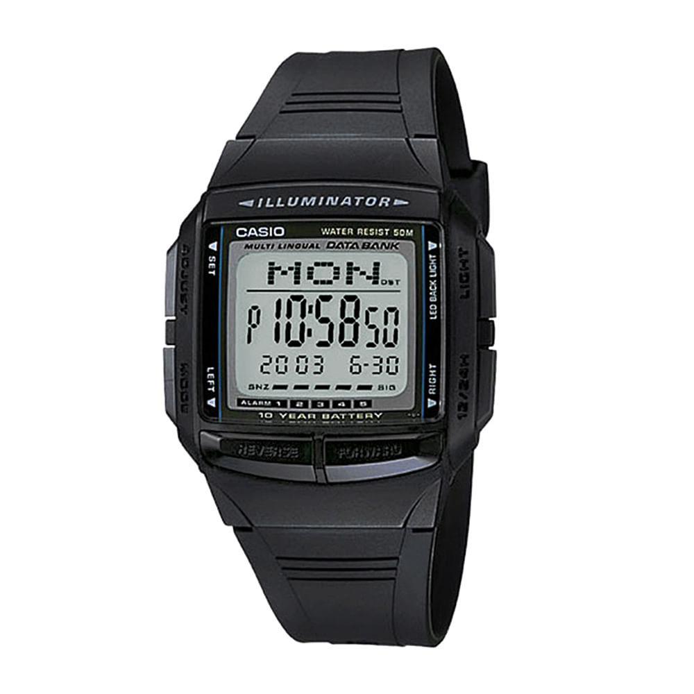 Relógio CASIO VINTAGE masculino digital preto DB-36-1AVDF - Relógio CASIO VINTAGE masculino data bank DB-36-1AVDF