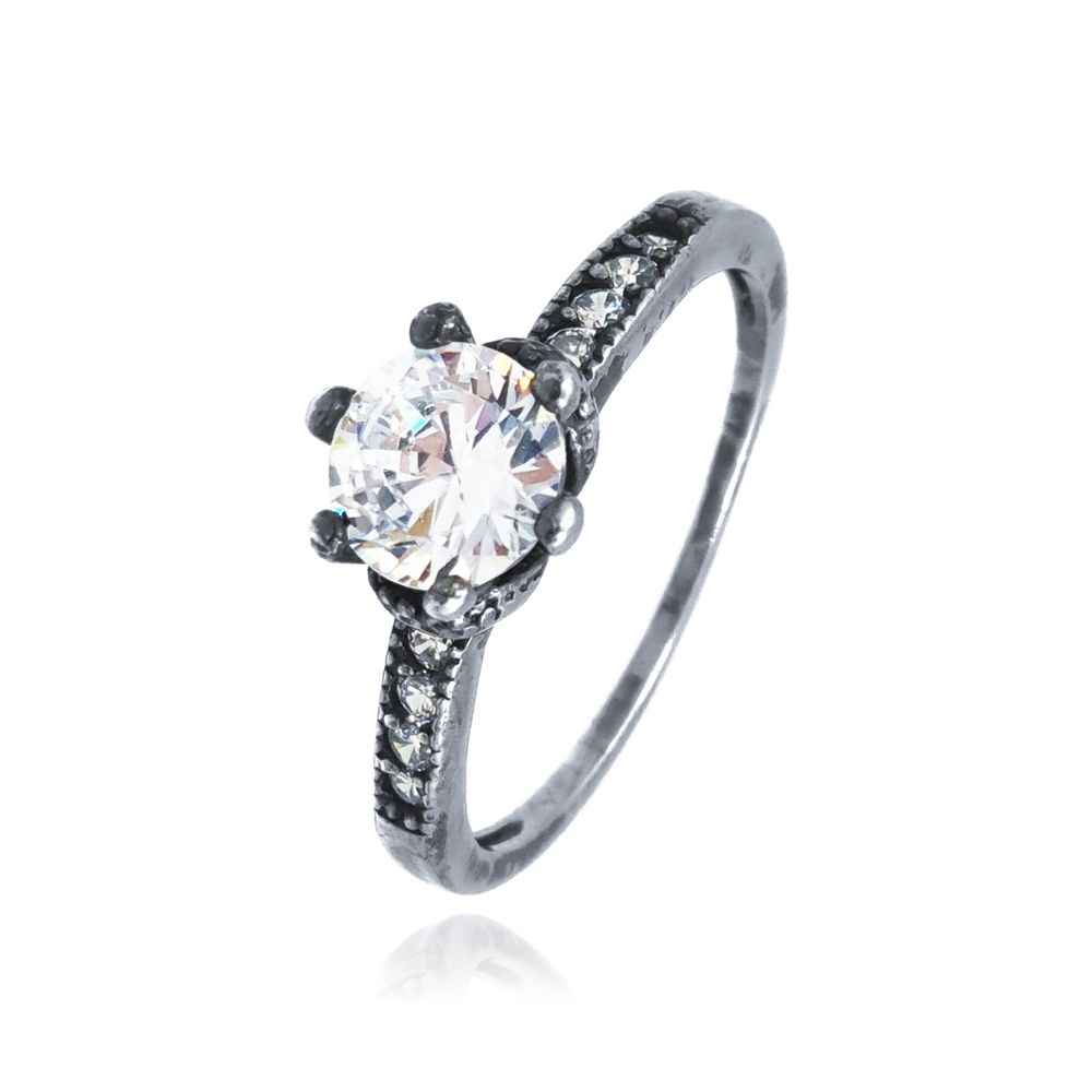 Anel de Prata solitário envelhecido com Zircônia mod 946916