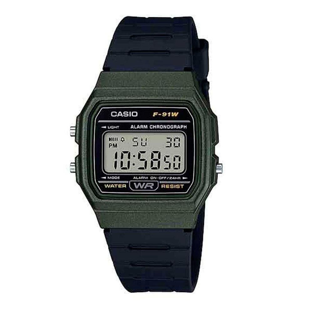 Relógio CASIO unissex digital verde F-91WM-3ADF