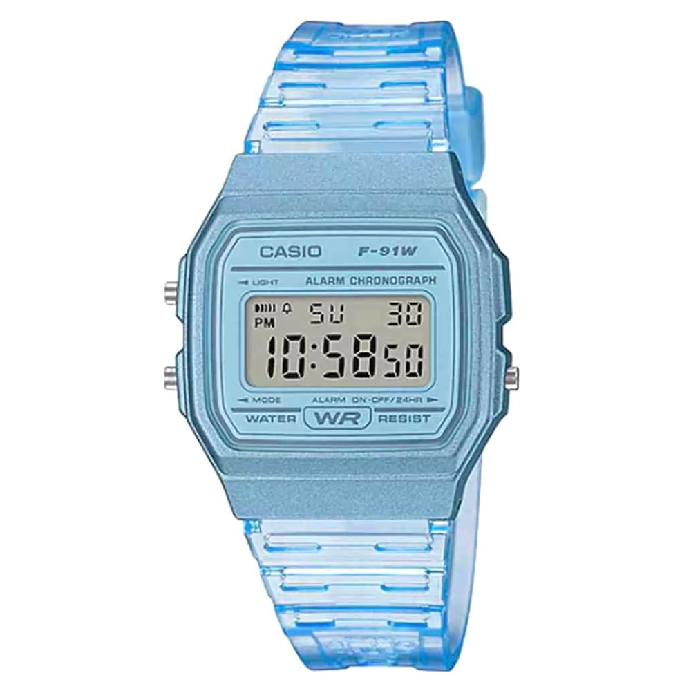 Relógio CASIO feminino digital azul translúcido F-91WS-2DF