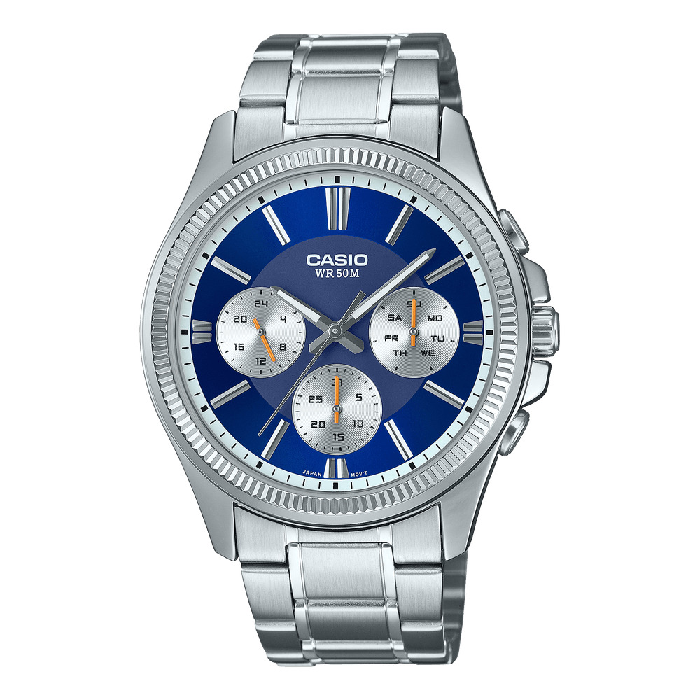 Relógio CASIO masculino analógico prata azul MTD-135D-2AVDF