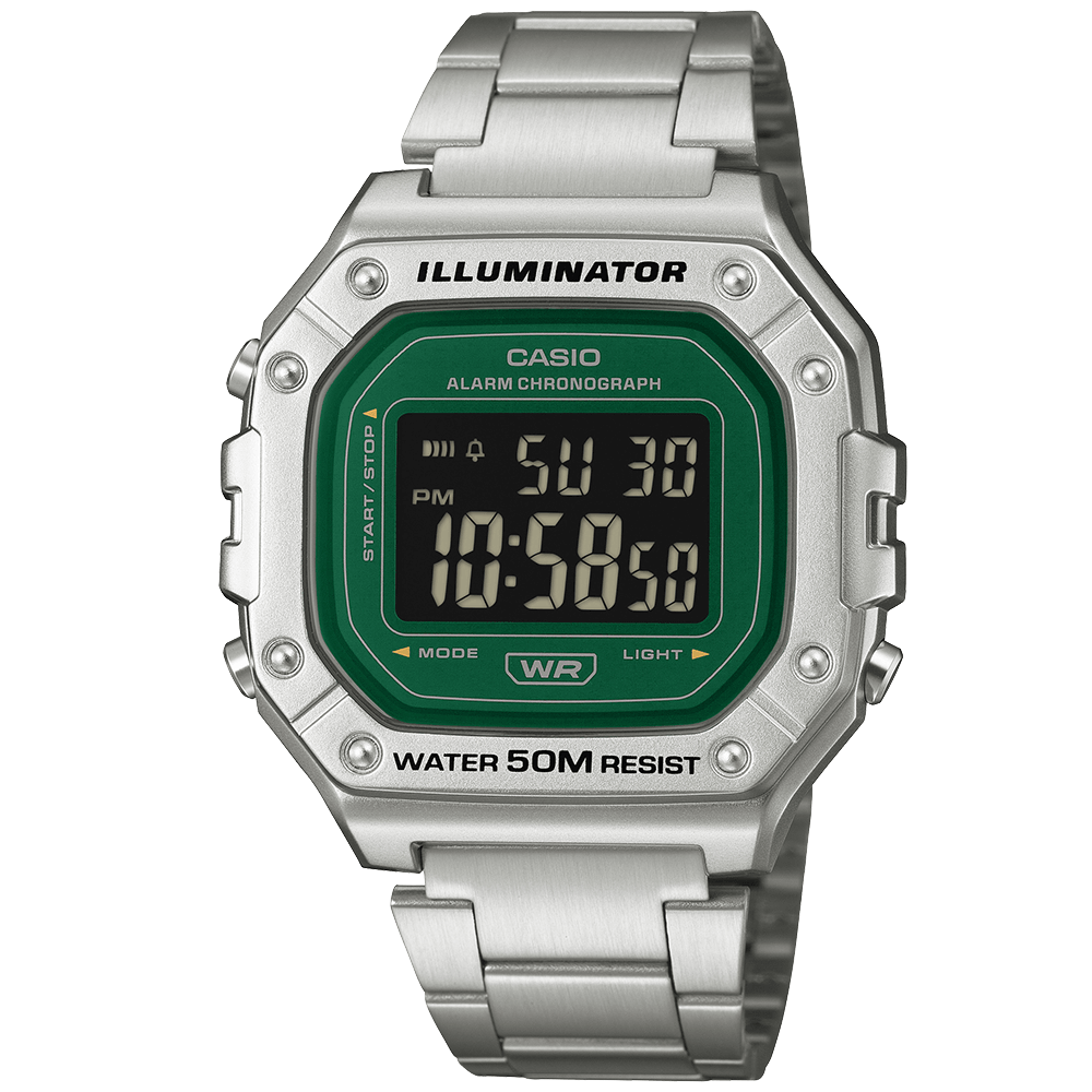 Relógio CASIO masculino prata verde digital W-218HD-3AVDF