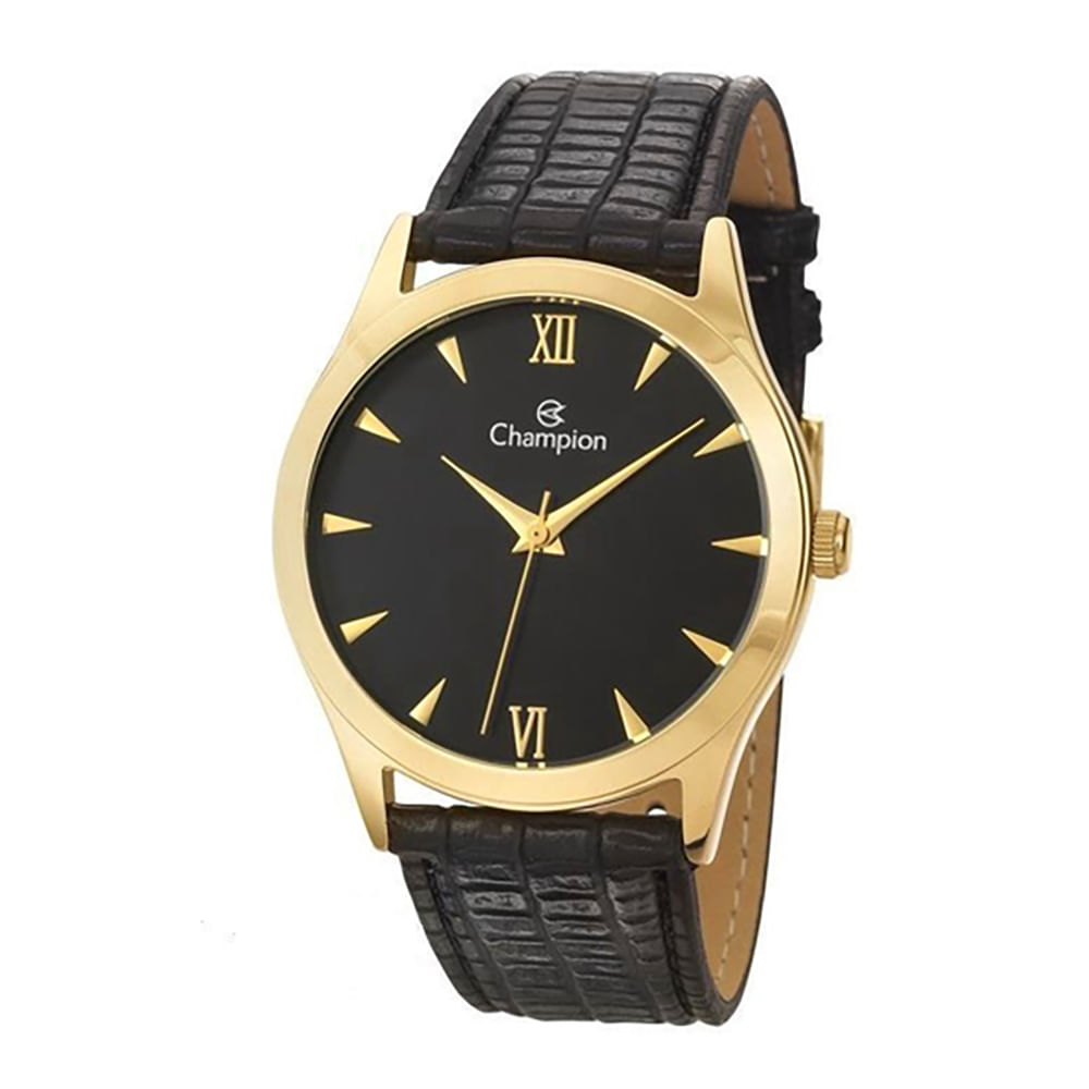 Relógio CHAMPION masculino dourado couro preto CH22742P
