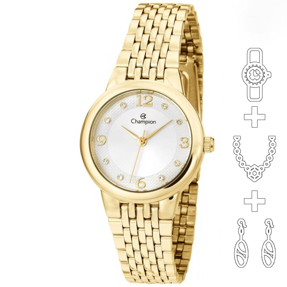 Relógio CHAMPION KIT feminino dourado strass CH24857B