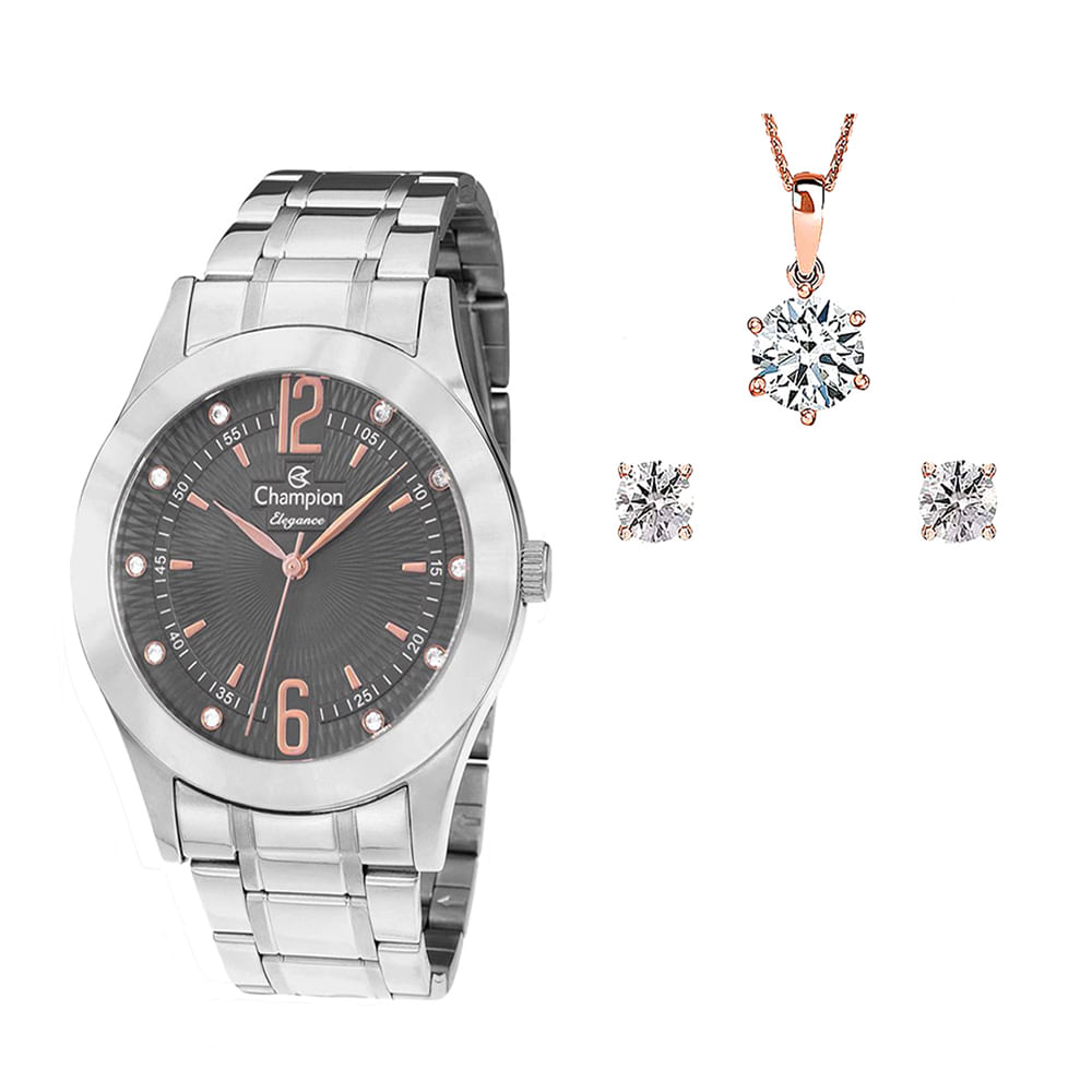 Relógio CHAMPION KIT feminino prata cinza analógico CN20800K