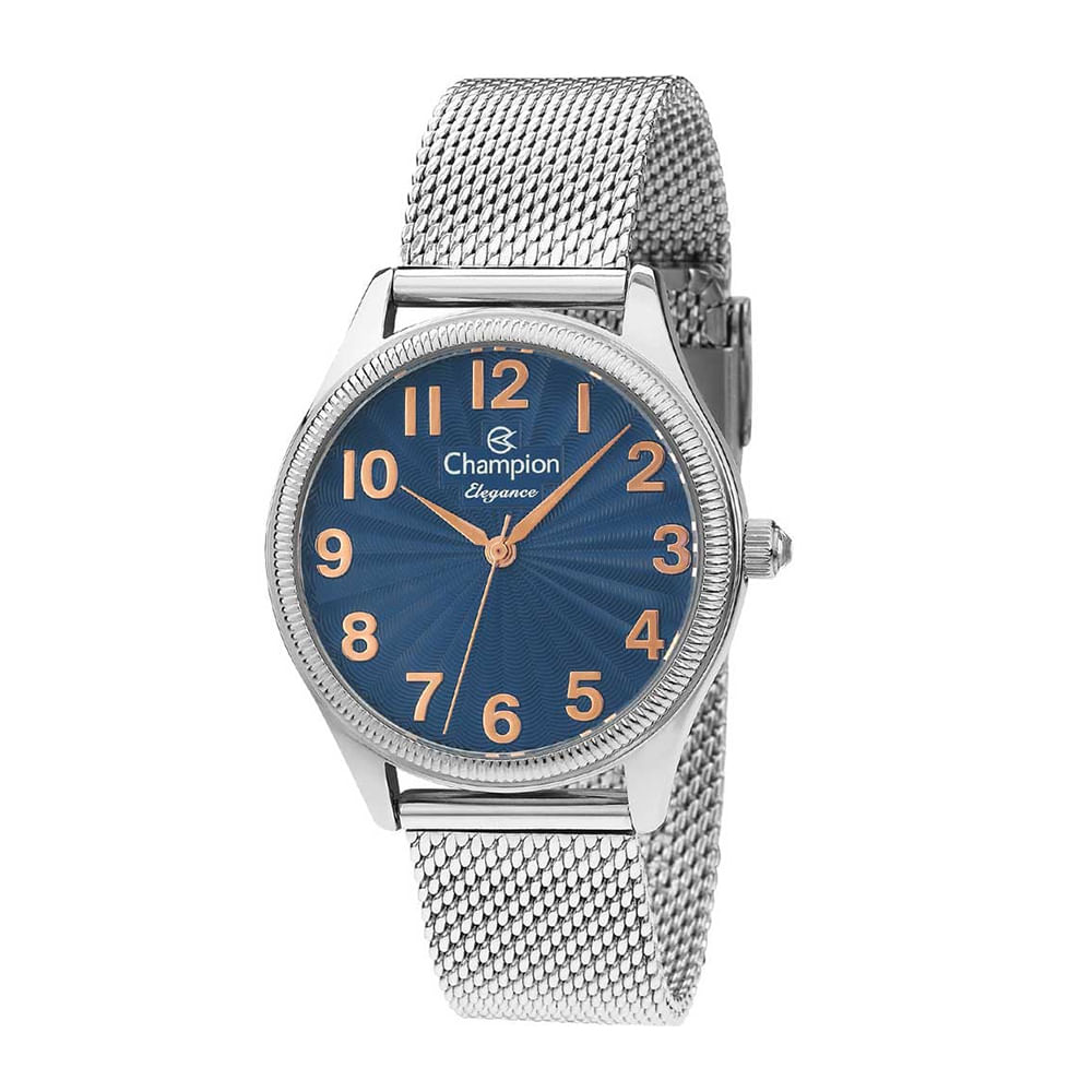 Relógio CHAMPION feminino prata esteira azul CN24468F