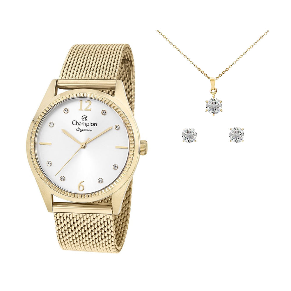 Relógio CHAMPION KIT feminino dourado esteira CN25770E