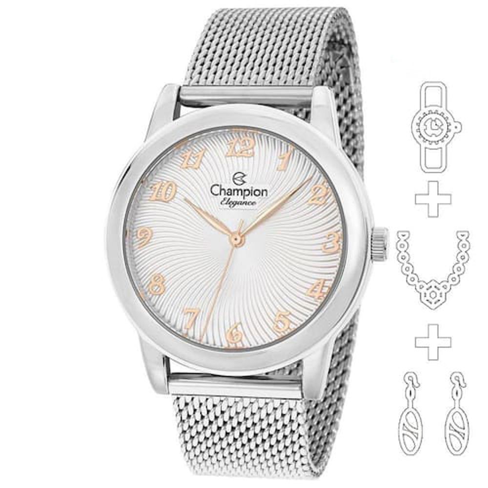 Relógio CHAMPION KIT feminino prata esteira CN28455S