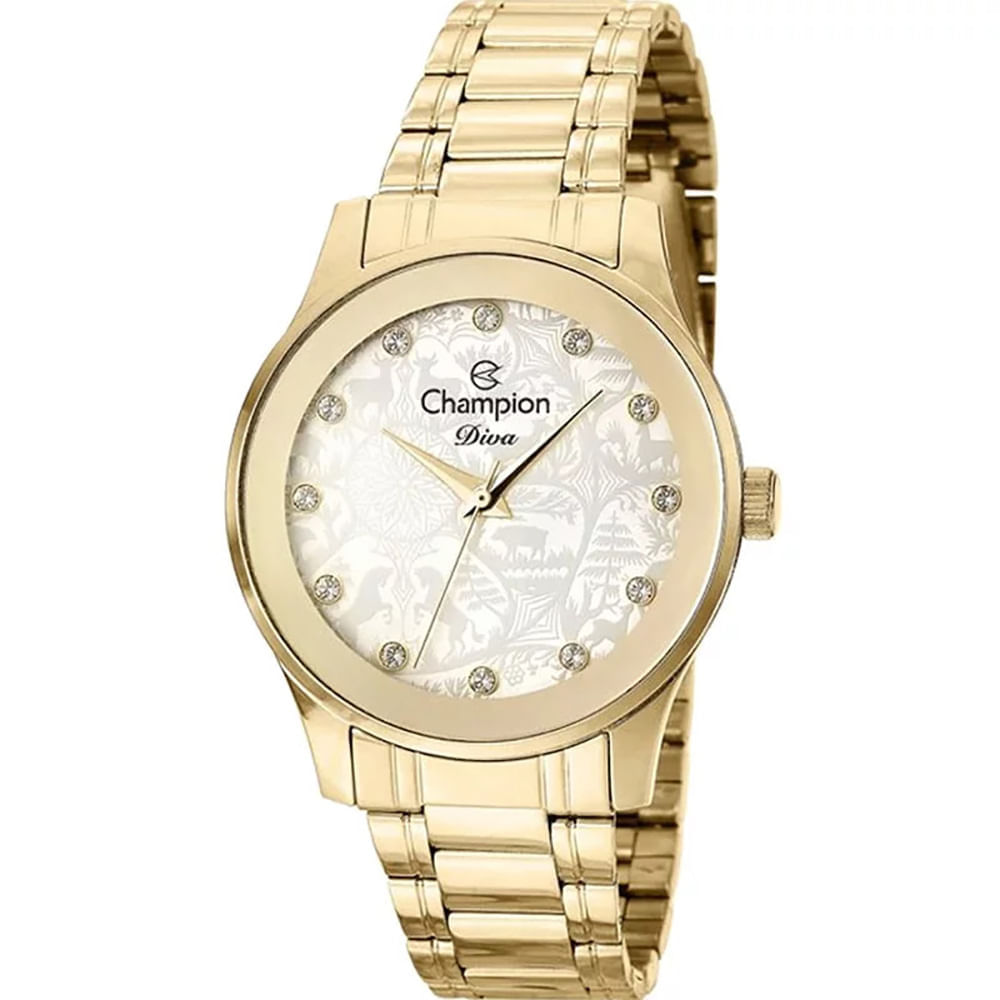 Relógio CHAMPION feminino dourado strass analógico CN27410H