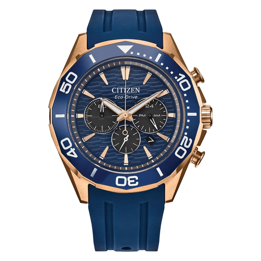 Relógio CITIZEN eco-drive cronógrafo azul rosê CA4733-00LN