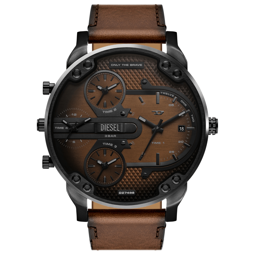 Relógio DIESEL analógico couro marrom preto DZ7492B1 N1NX