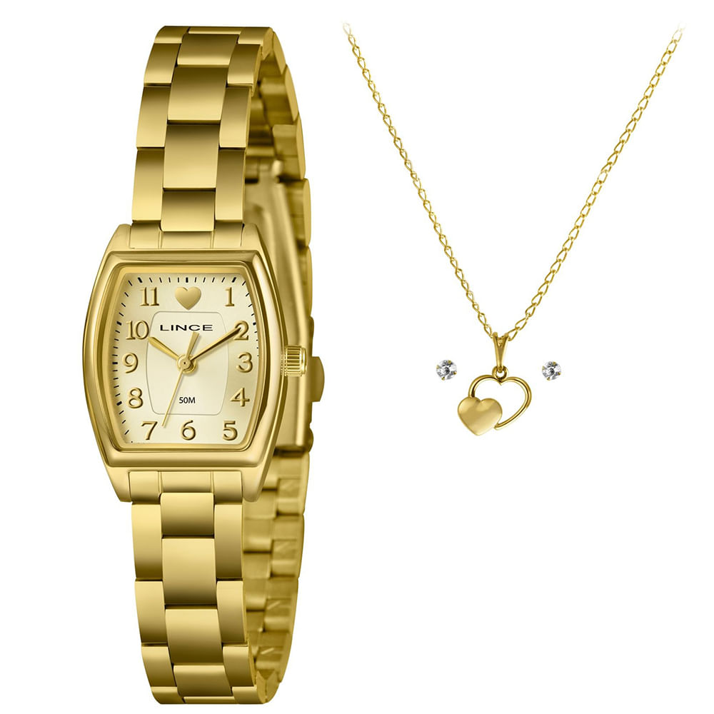 Relógio LINCE feminino kit dourado LQGH306L22 K0LHC2KX