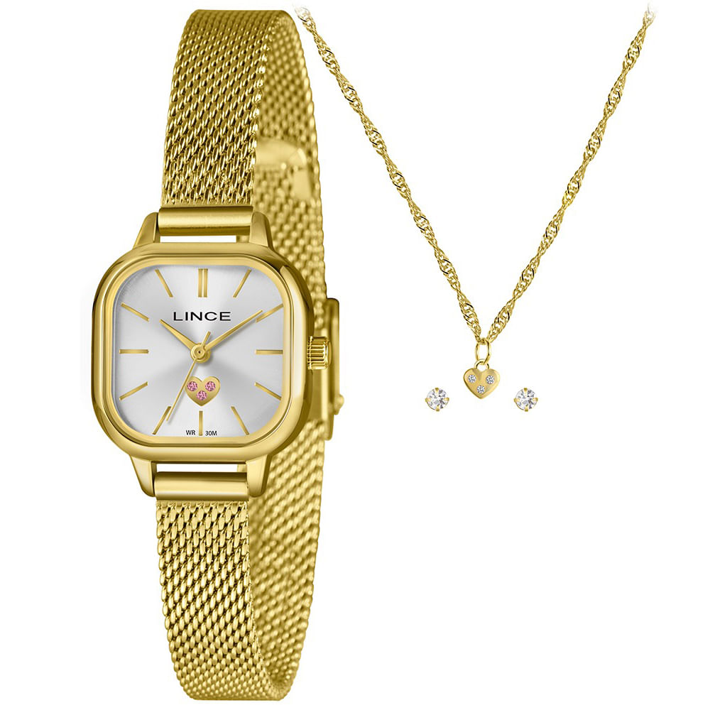 Relógio LINCE feminino kit dourado LQGM078L23 K0L6S1KX