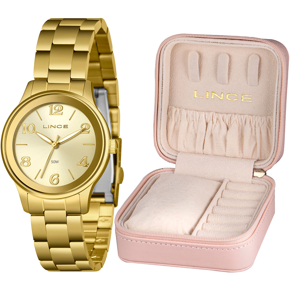 Relógio LINCE analógico feminino dourado LRGM058L32 C1KX