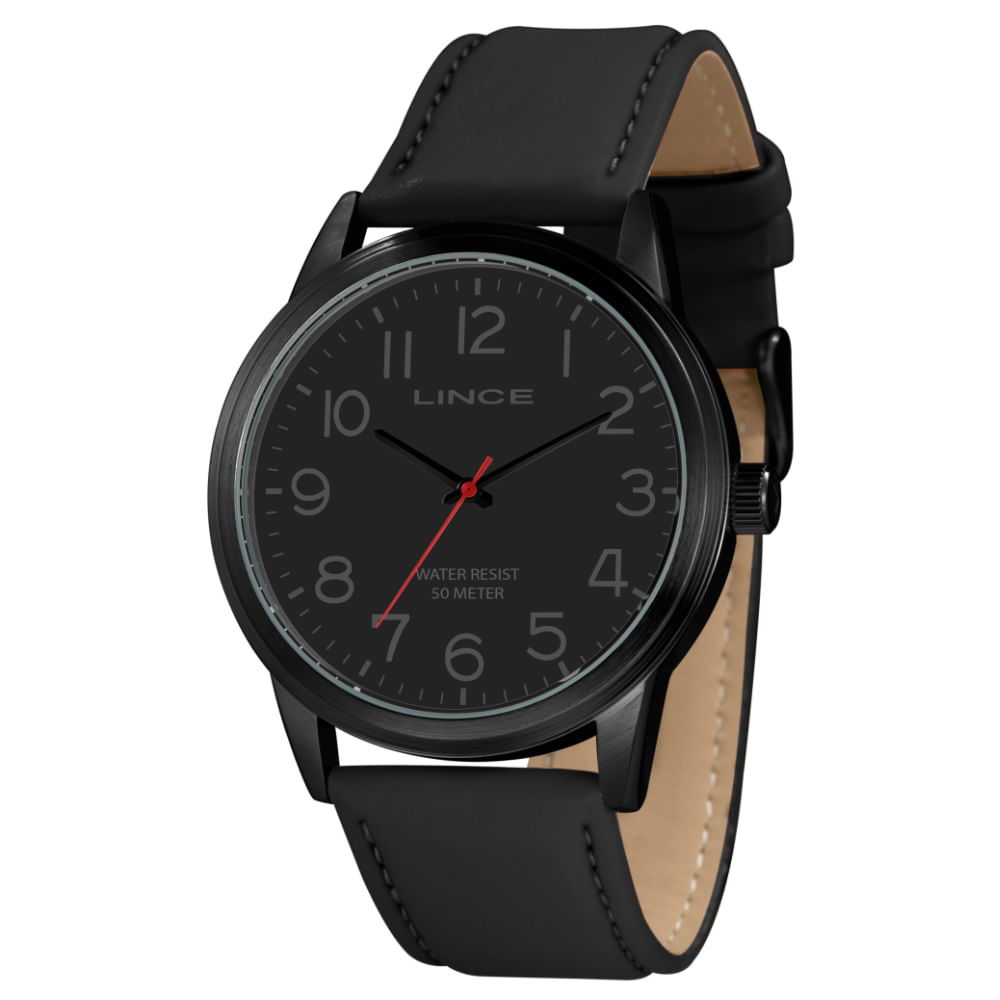 Relógio LINCE masculino couro preto vermelho MRCH189L46 P2PX