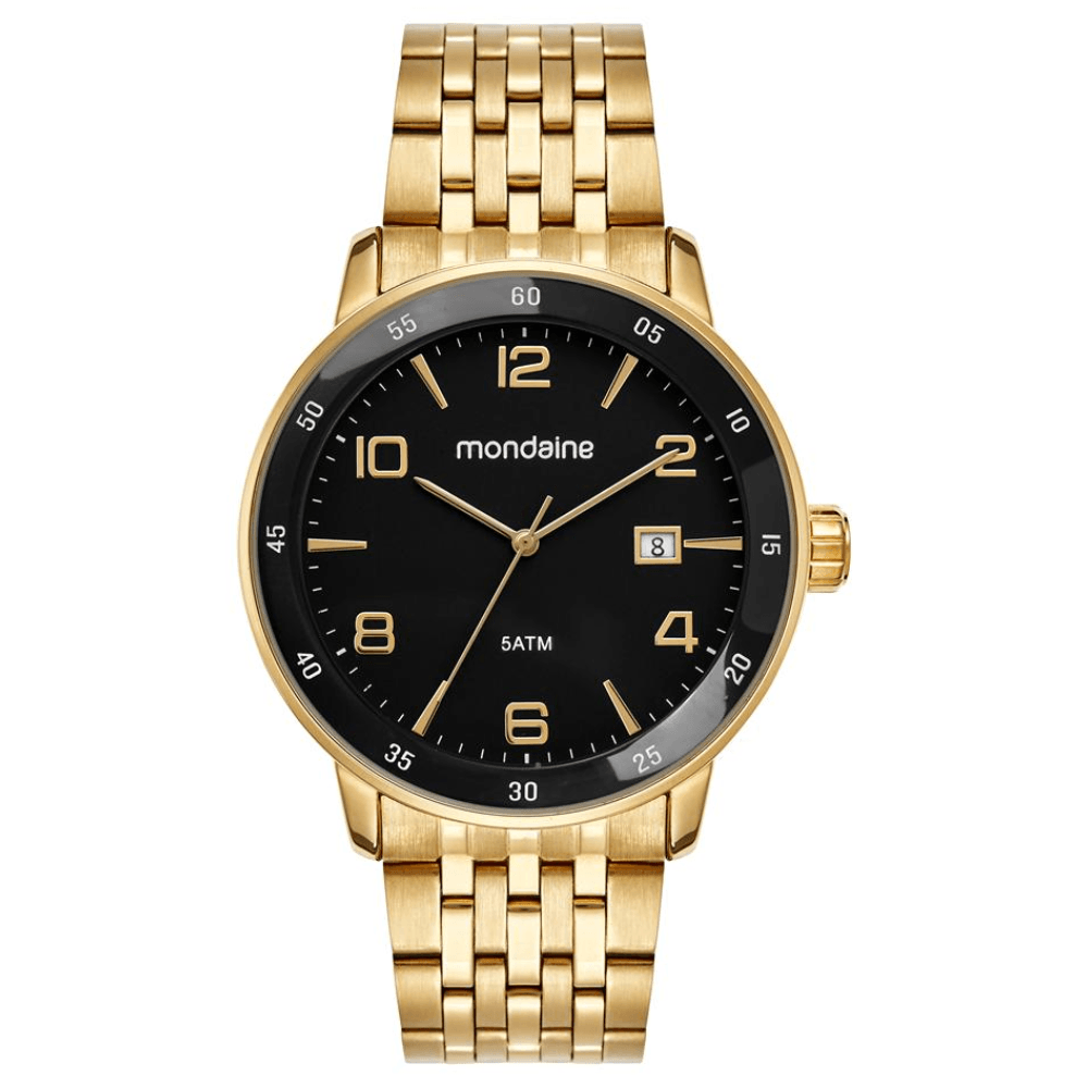 Relógio MONDAINE masculino dourado preto 32786GPMVDE3