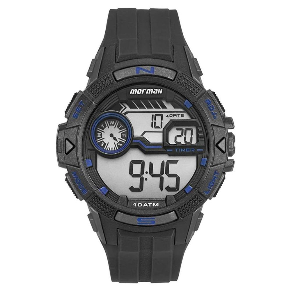 Relógio MORMAII masculino digital preto azul MO5007/8A