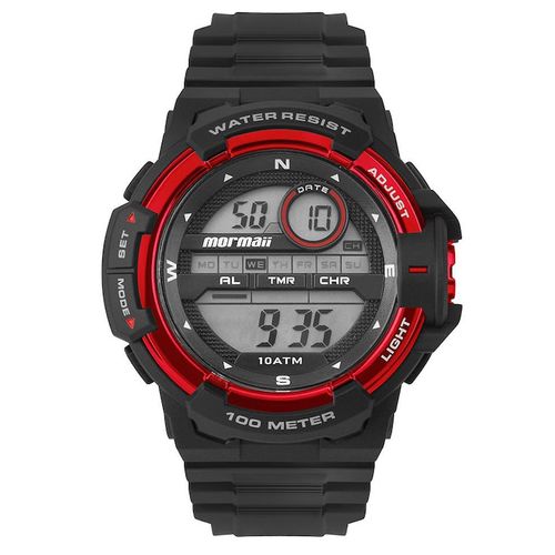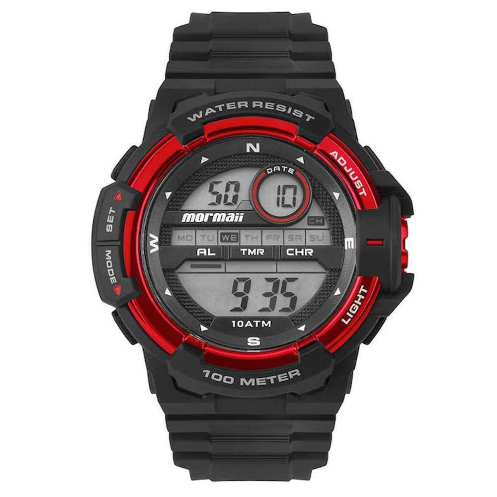 Relógio MORMAII masculino digital preto vermelho MOLCDAAS/8R
