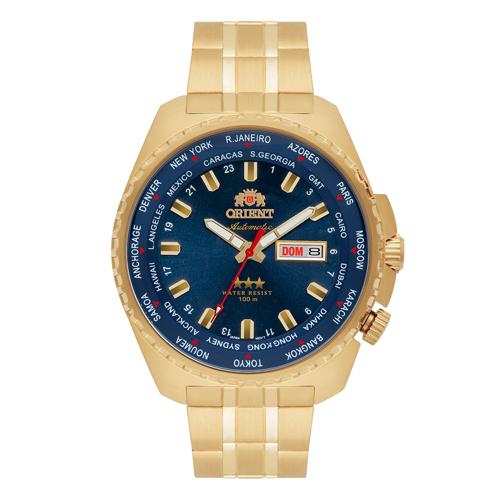 Cor do mostrador: Azul, Dourado