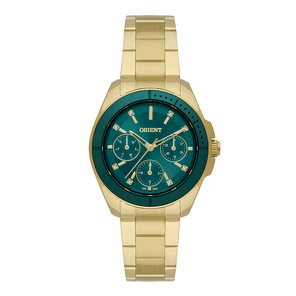 Relógio ORIENT feminino dourado verde FGSSM096 E1KX