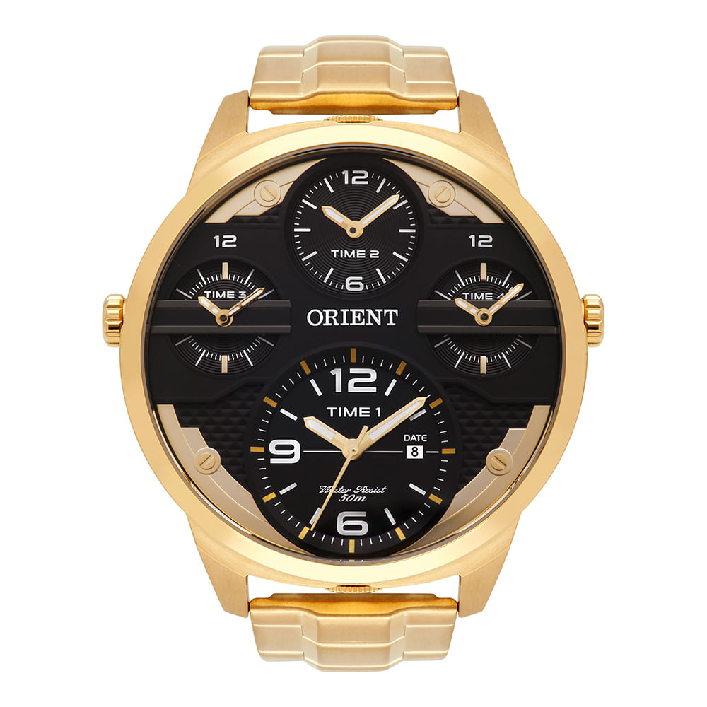 Relógio ORIENT masculino multifunção dourado MGSST002 P2KX