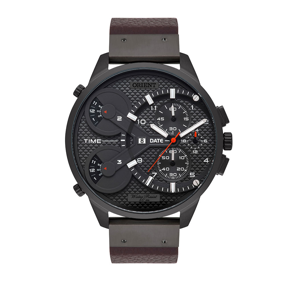 Relógio ORIENT masculino multi-time couro MYSCT003 G2NX