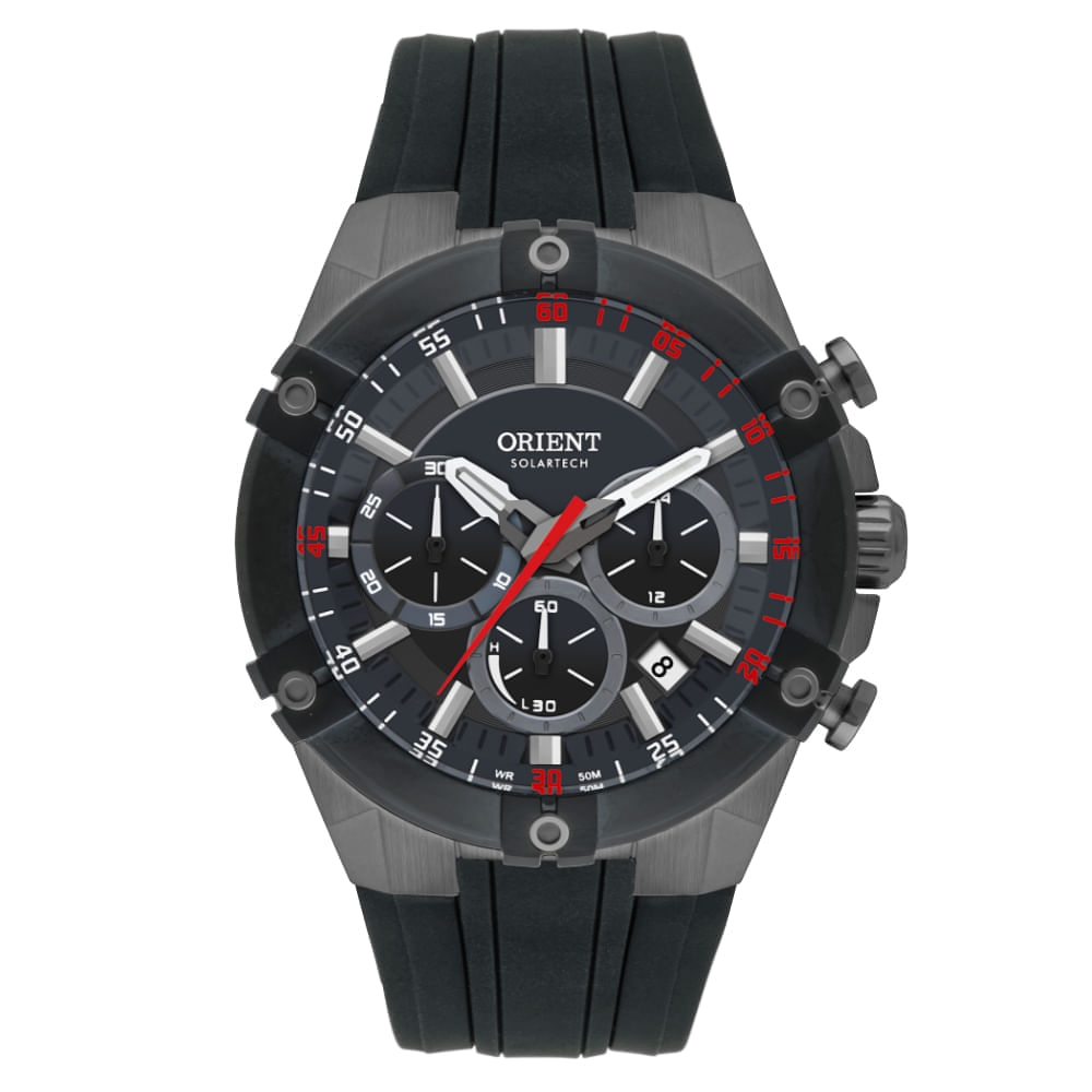 Relógio ORIENT cronógrafo solar borracha preto MYSPC005 G1PX