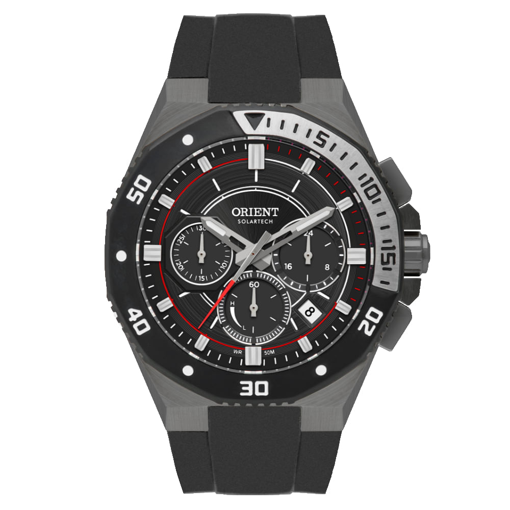 Relógio ORIENT cronógrafo solar borracha preto MYSPC007 G1PX