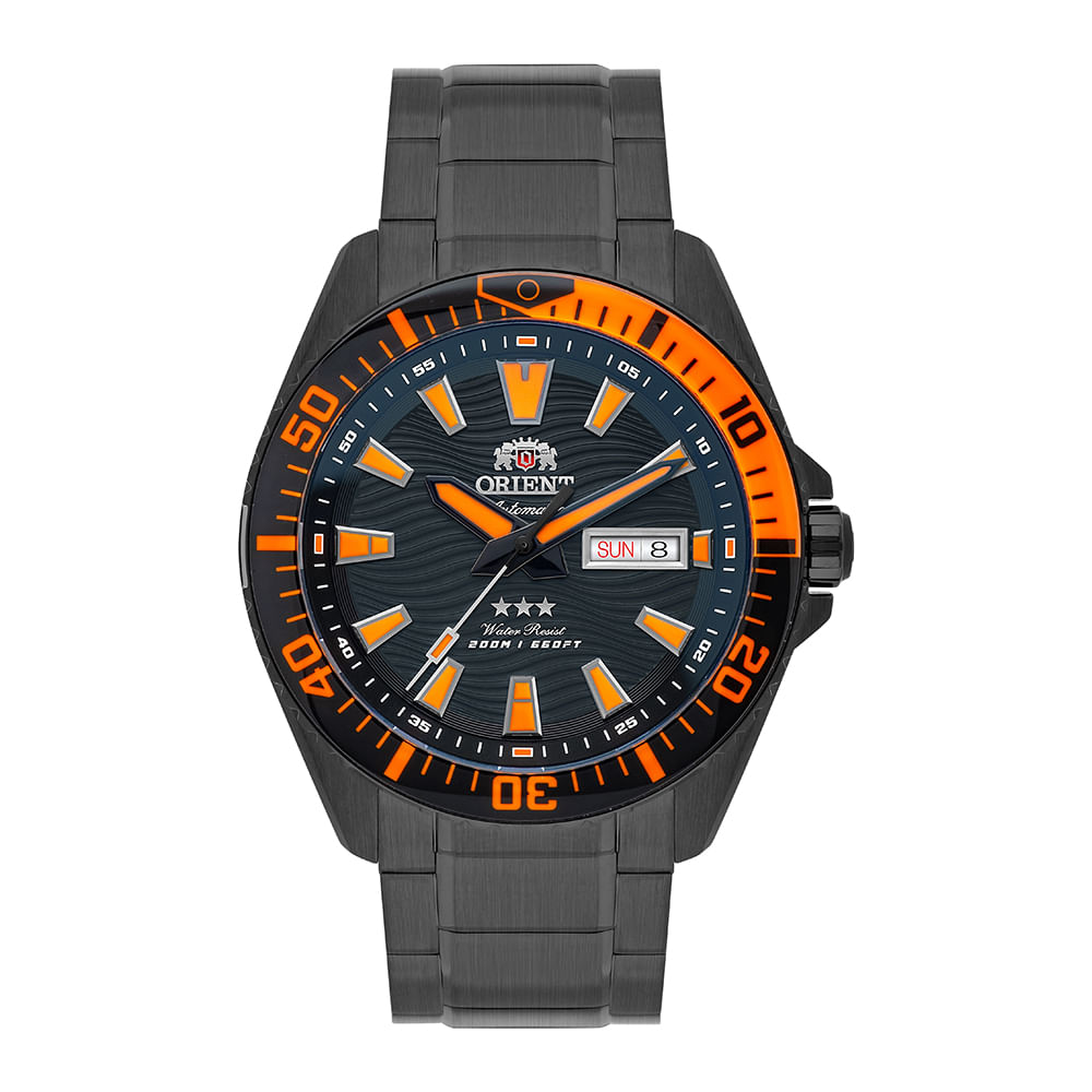 Relógio ORIENT masculino automatico laranja YN6PP012 P1PX
