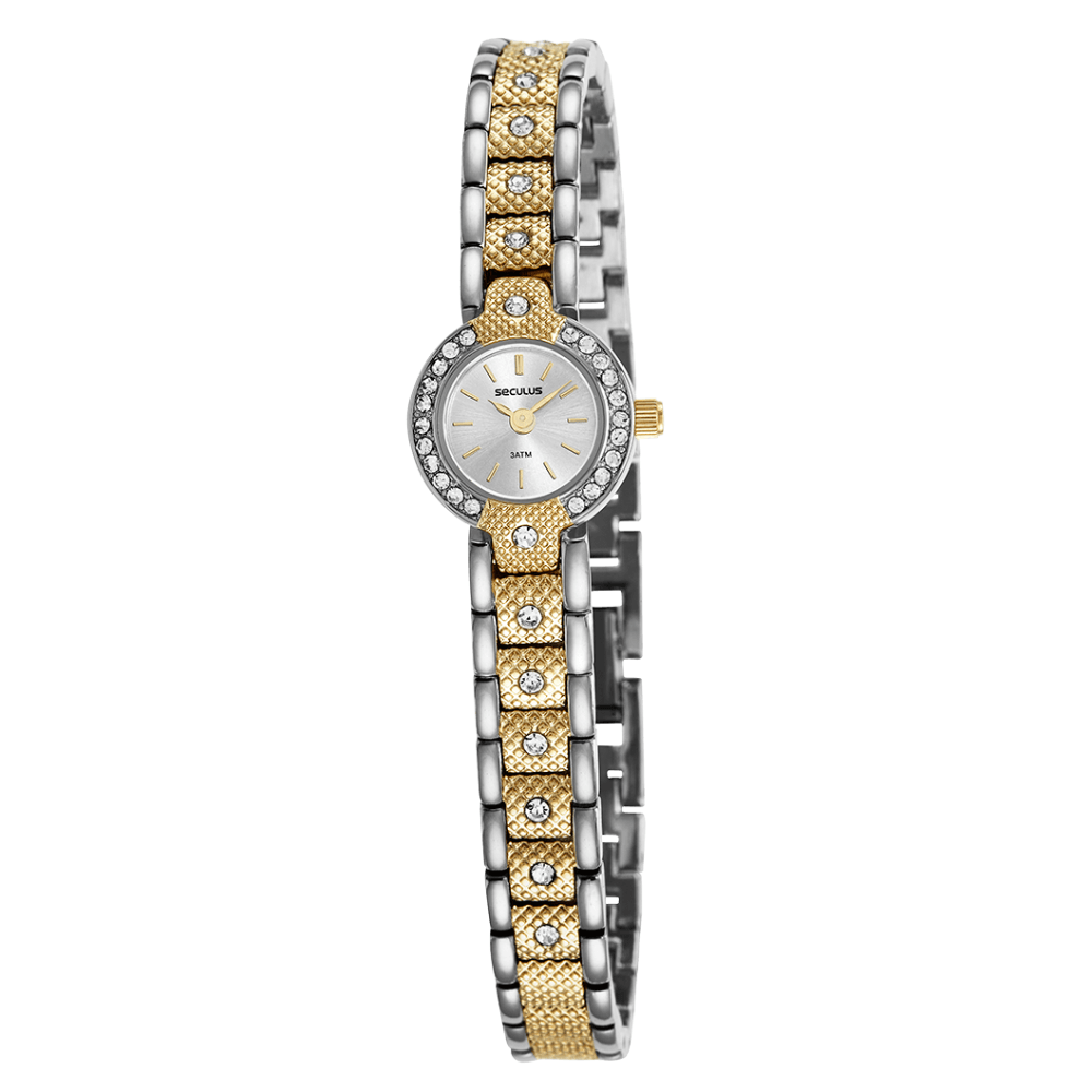Relógio SECULUS feminino dourado prata strass 44239LPSVDA2