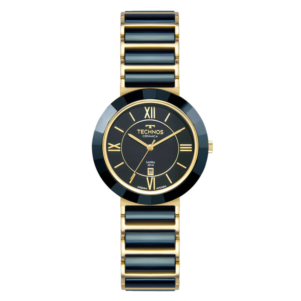 Relógio TECHNOS cerâmica safira azul dourado 2015CE/1A