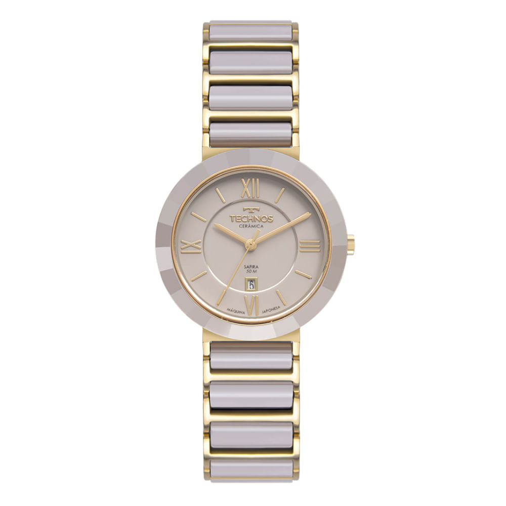 Relógio TECHNOS cerâmica safira cinza dourado 2015CE/1C
