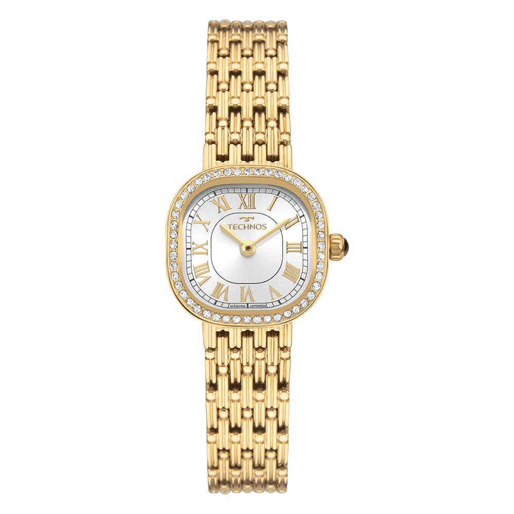 Relógio TECHNOS feminino quadrado dourado strass 2025LUV/1K