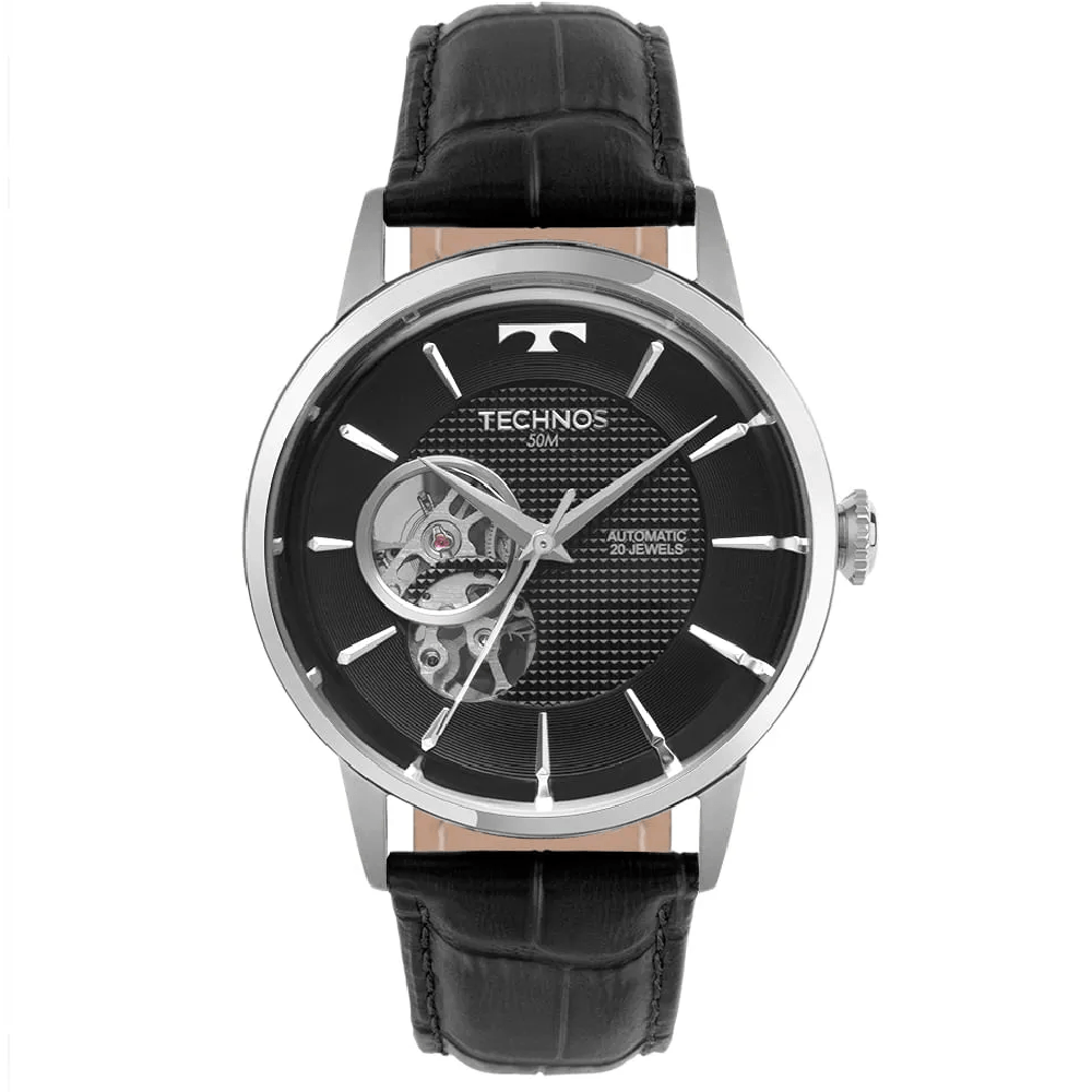 Relógio TECHNOS masculino automático couro preto G3265BA/0P