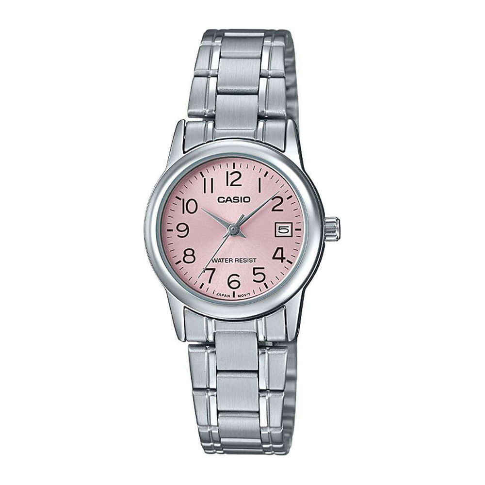 Relógio CASIO feminino rosa prateado LTP-V002D-4BUDF