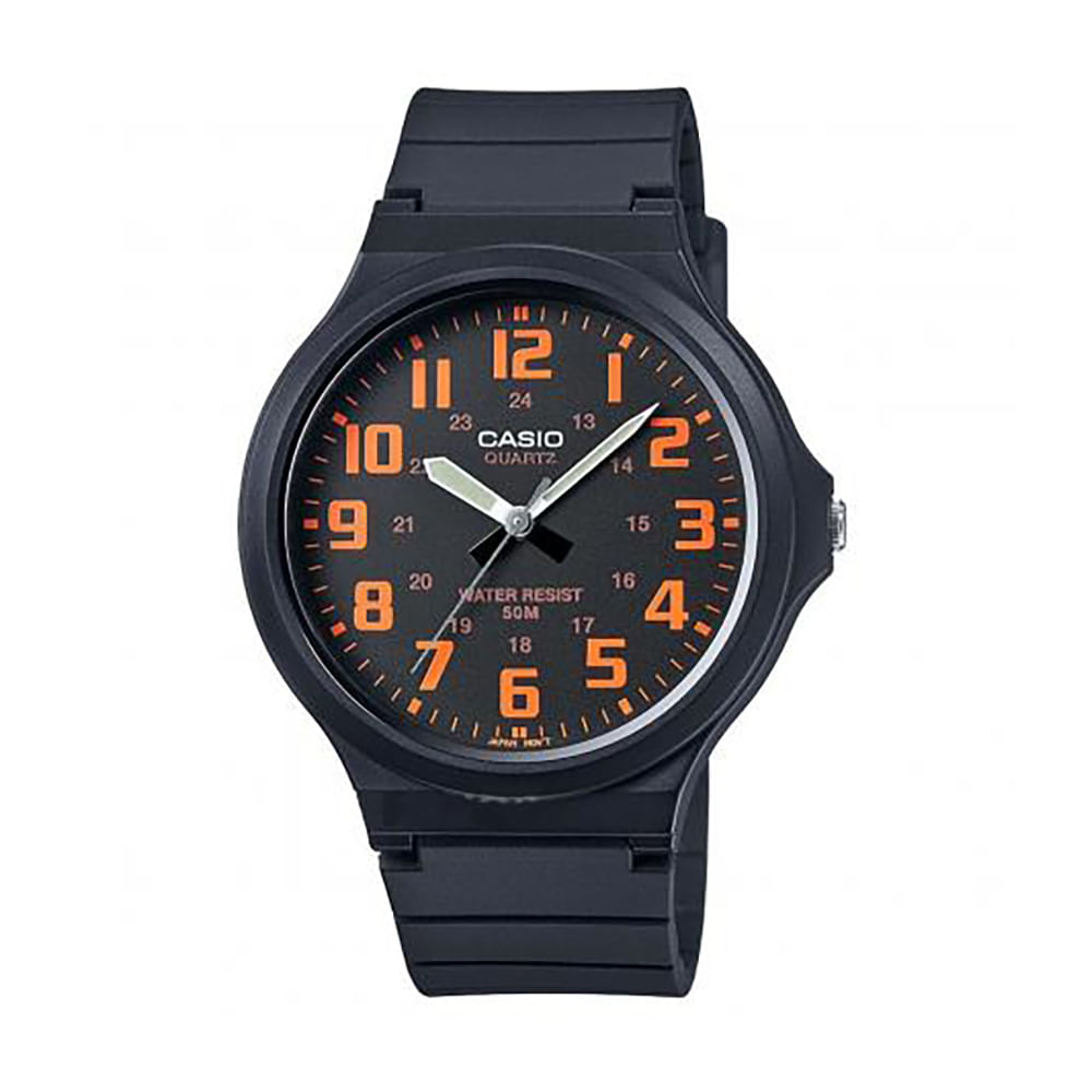 Relógio CASIO masculino preto laranja MW-240-4BVDF