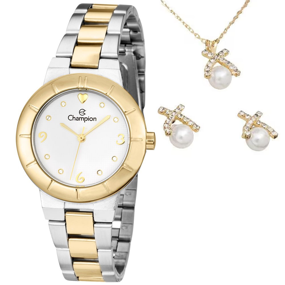 Relógio CHAMPION feminino analógico dourado prata CN28419B