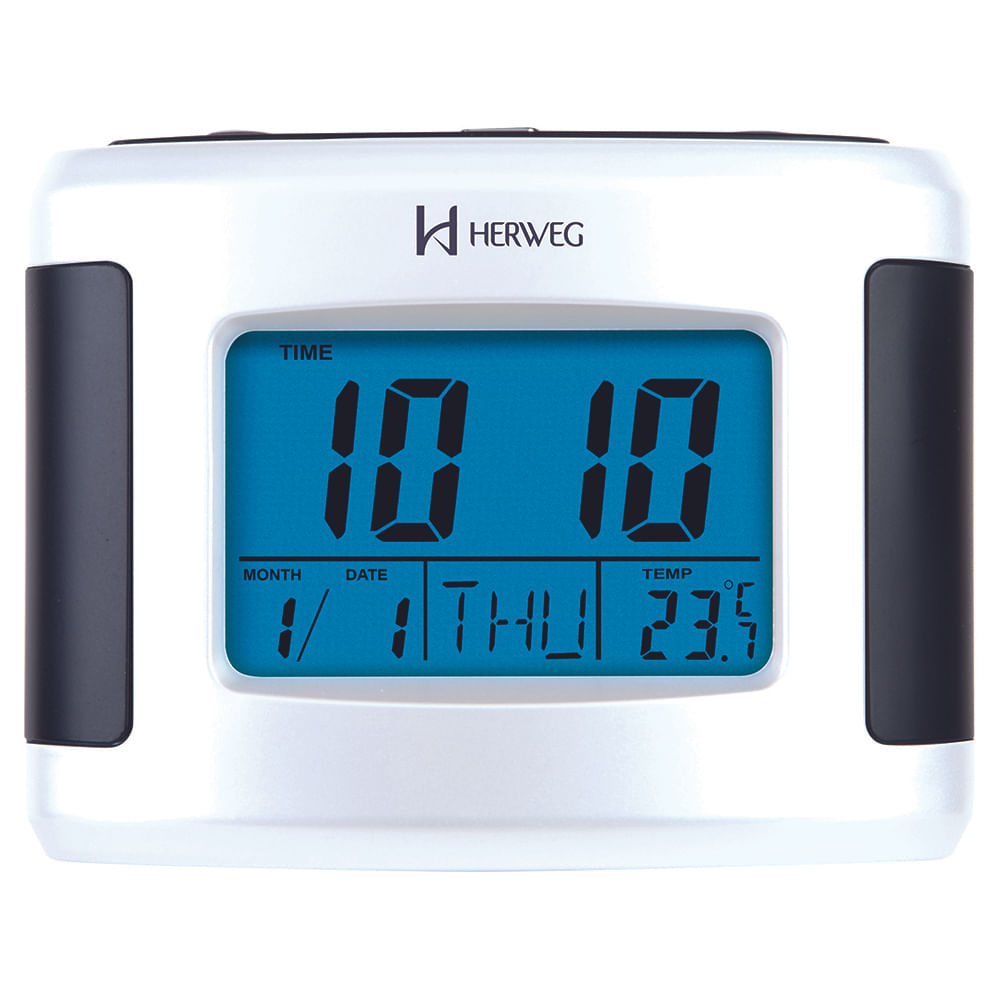 Relógio Despertador HERWEG digital cinza metálico 2977-071
